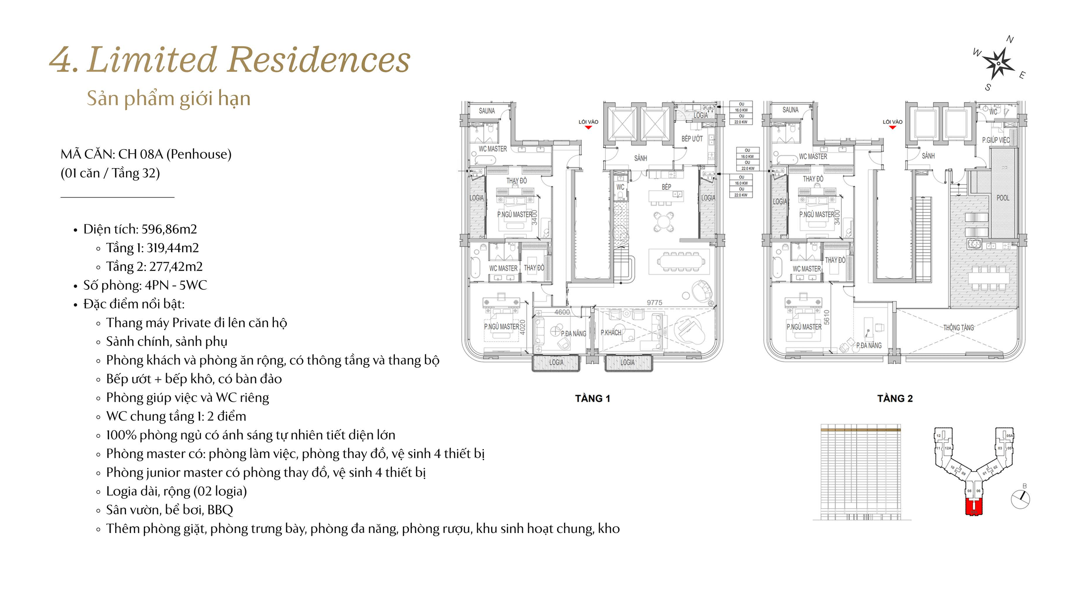 Các dòng căn hộ: Grand Residences, Premier Residences, Signature Residences và Limited Residences.