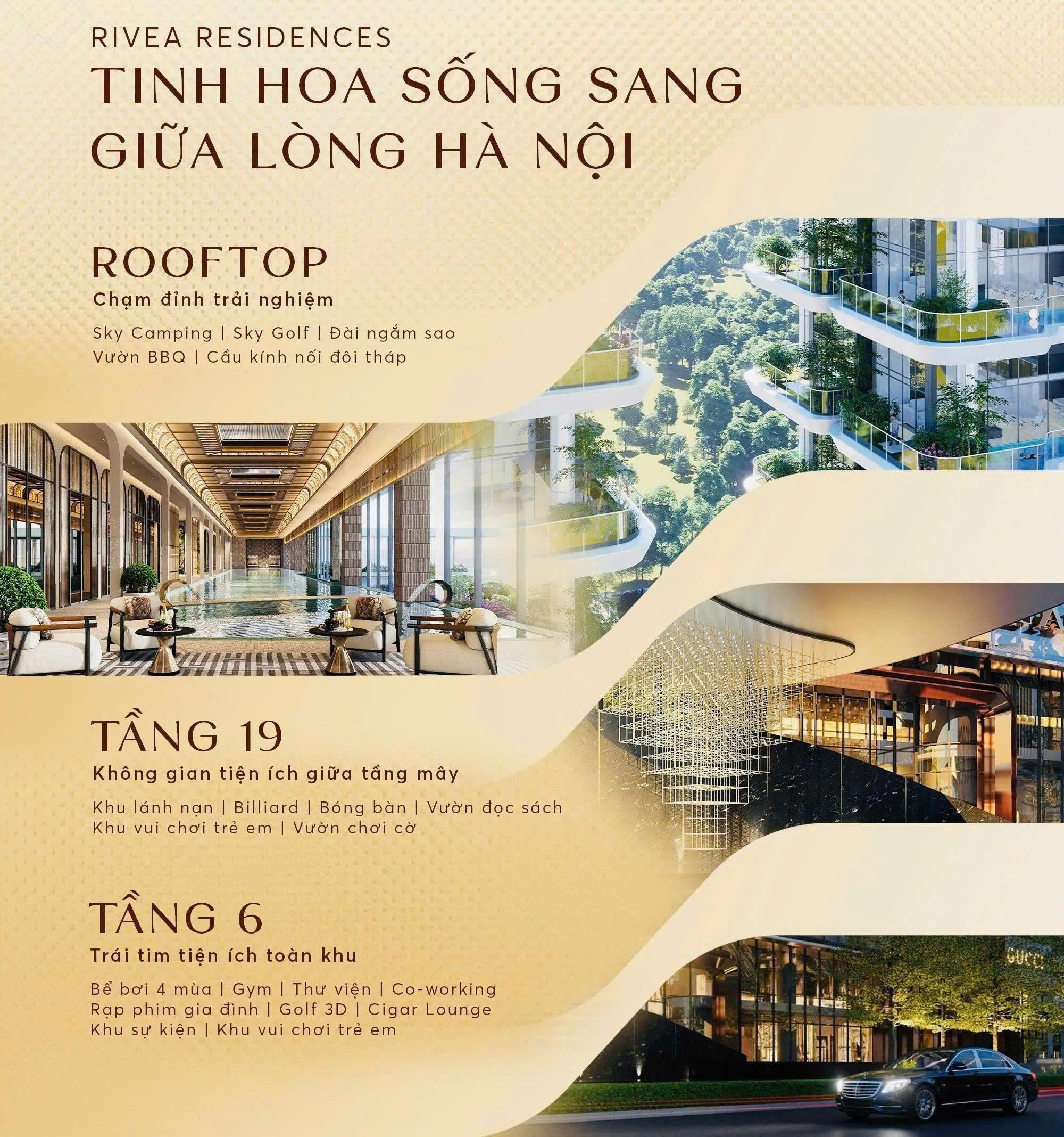 Với sự đầu tư đồng bộ, hệ tiện ích xanh của Rivea Hanoi Residences không chỉ phục vụ nhu cầu sống mà còn là biểu tượng của lối sống hiện đại cân bằng, bền vững và đầy cảm xúc.